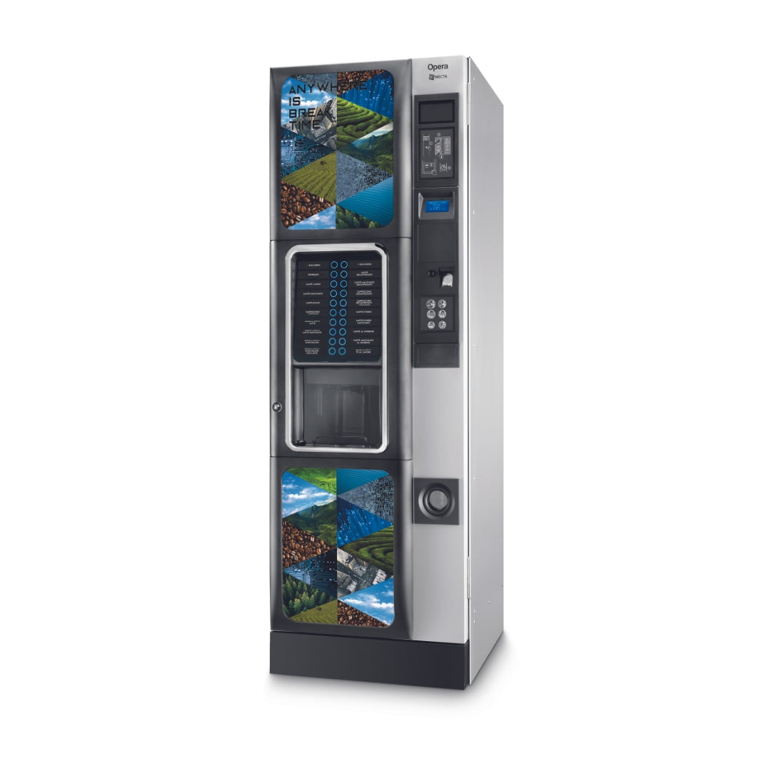 Rendimiento y Calidad Superior en el Vending. La Opera de Necta es una máquina freestanding que combina tecnología avanzada y un diseño funcional, ofreciendo una excelente relación precio-rendimiento. Con capacidad para preparar una amplia variedad de bebidas de alta calidad, es ideal para satisfacer las demandas de los clientes más exigentes.